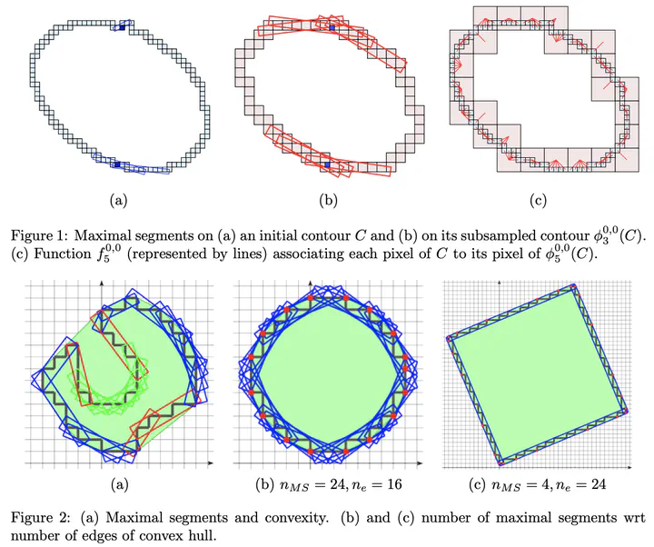 It is often interesting to study the geometry of digitization of euclidean shapes in the plane, and to establish connections between the discrete geometry computed along the digital contour and the euclidean geometry of the initial shape. this task is essential in image analysis, where the initial euclidean shape has been lost through various acquisition and segmentation processes.