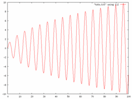 Un exemple plus compliqué est la fonction cos( sqrt(8*x) ) * (2+sqrt(x)) pour x entre 0 et 80. Cela donne