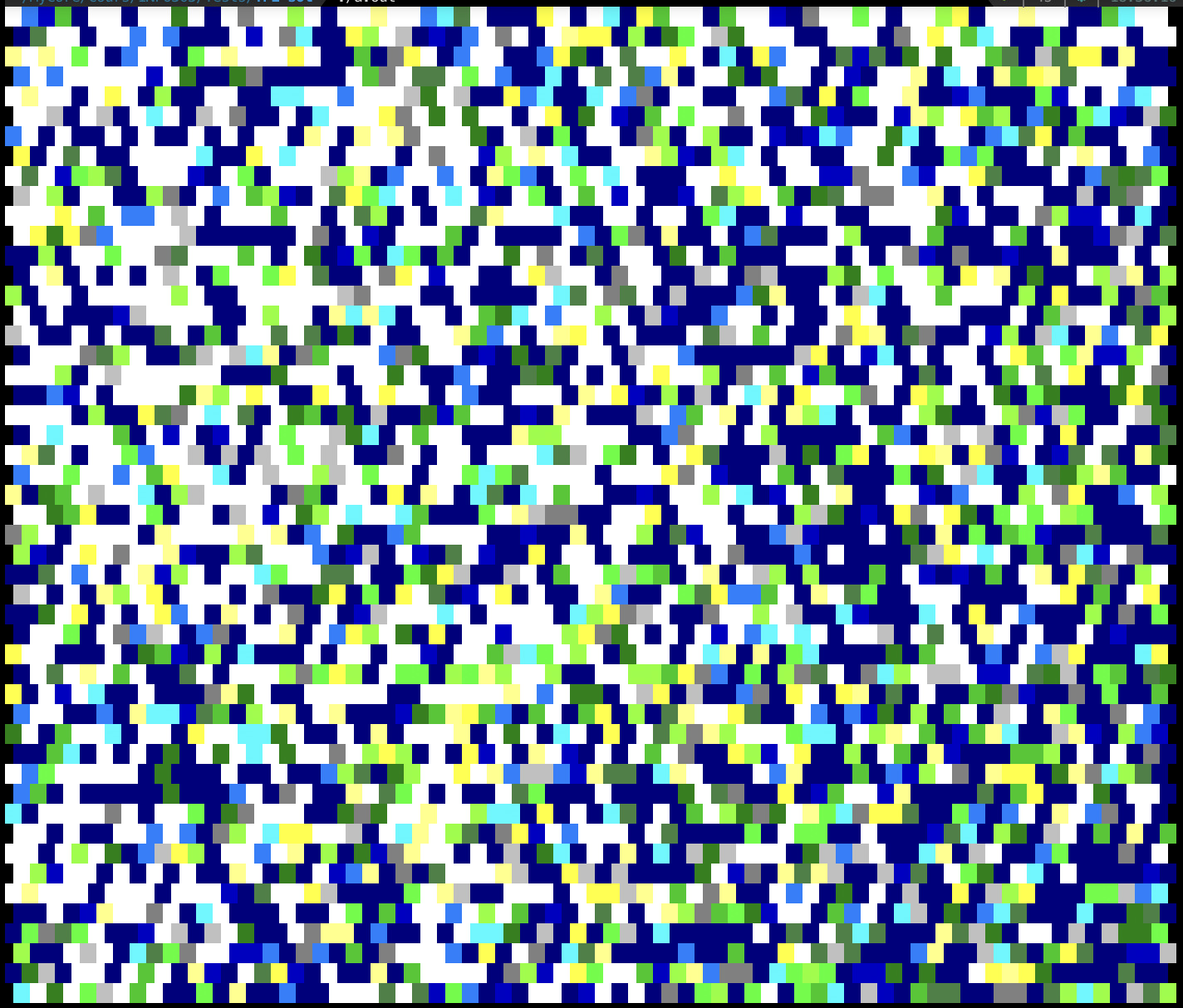 On va représenter l'altitude d'une case par un entier (<0: sous la mer, >= 0 plage/plaine/foret/montagne. On affichera une case sous forme de deux espaces colorés avec la fonction suivante :