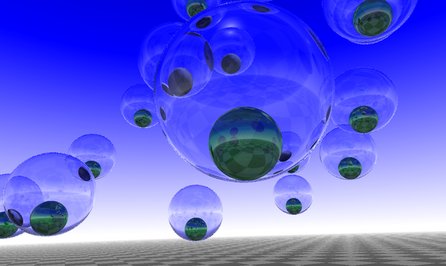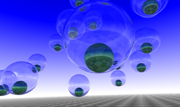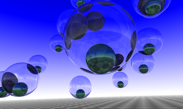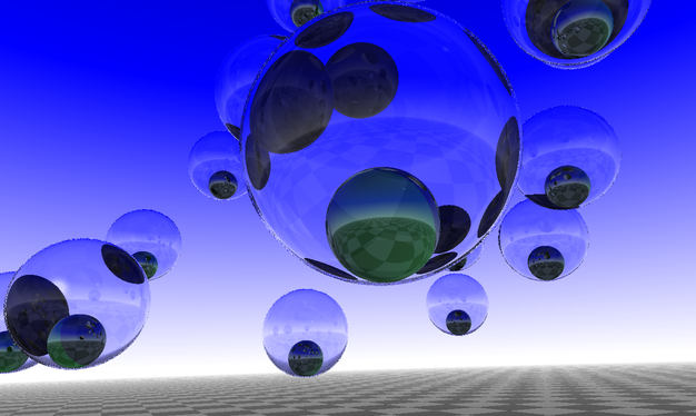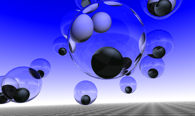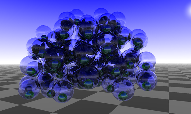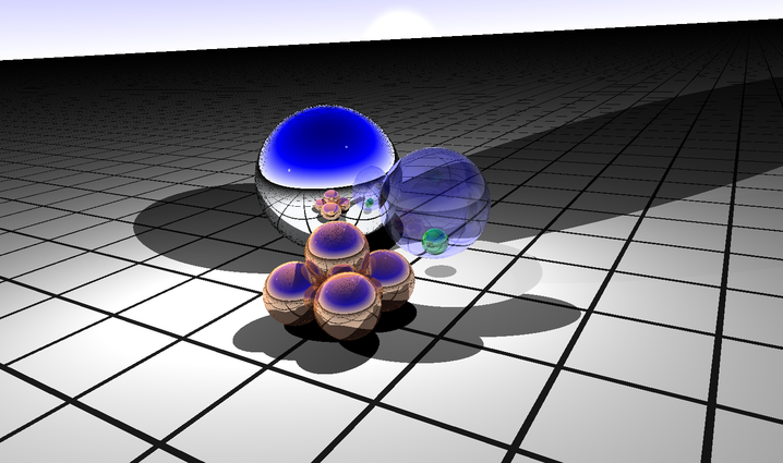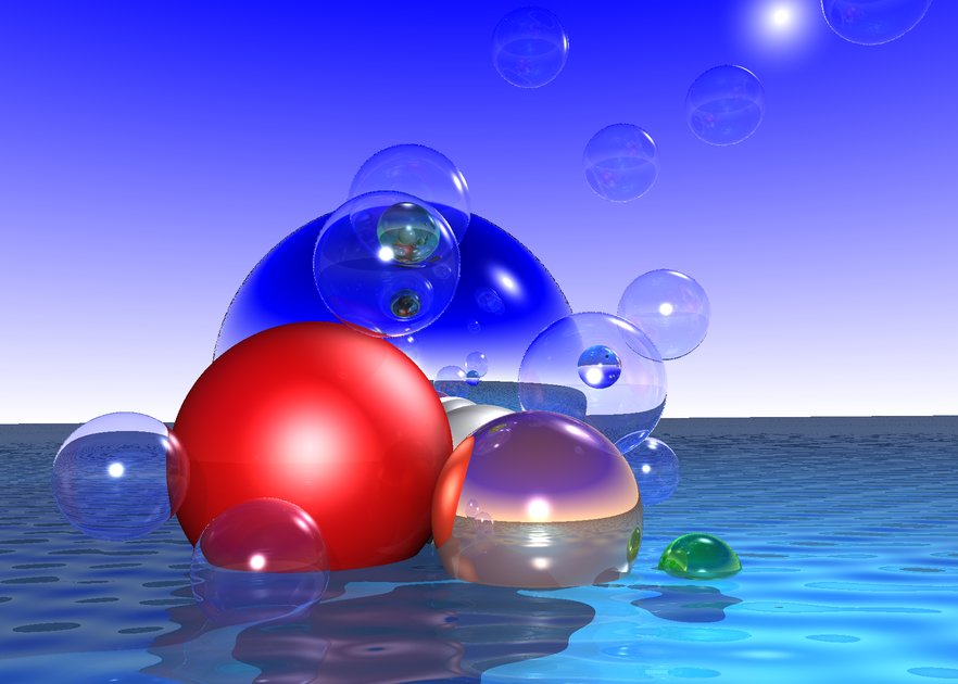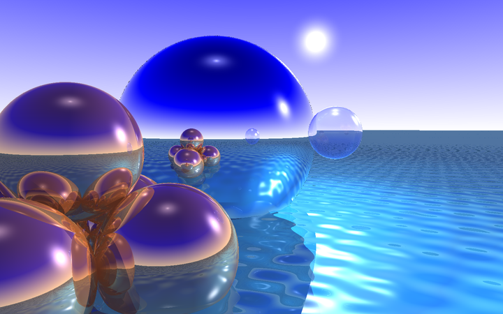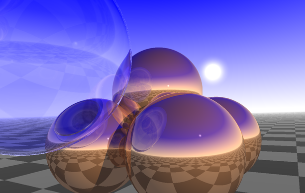 Vous avez maintenant une bonne base pour commencer à faire de jolies images. Ajoutez des sphères, modifiez des matériaux et proposez-en de nouveaux. Placez des lumières, etc. Modifiez les couleurs du fond pour un effet nuit / aube / plein jour. Un peu de créativité et vous pouvez faire de très jolies images ...