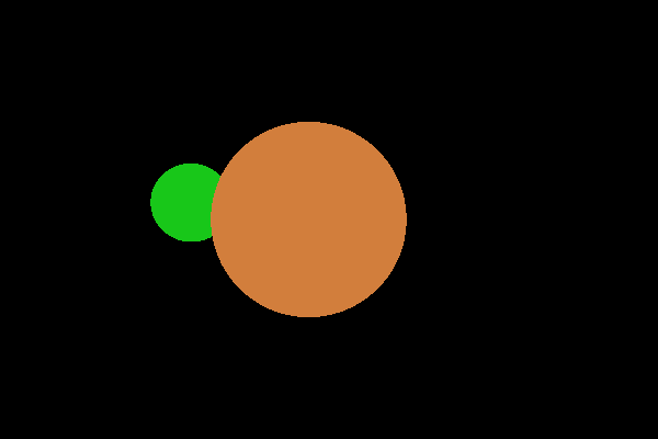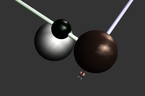 Rendu couleur simple (après Q3.3). Une des boules est devant l'autre. |