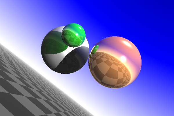 Que serait un ray-tracer sans les reflets ? Pas grand chose. En réalité les couleurs proviennent toujours d'une réflexion d'un rayon lumineux ou de sa transmission par transparence. La notion de couleur diffuse (ou mat) et de spécularité sont des approximations bien commodes pour du rendu rapide, mais traduisent en réalité des moyennes pour des zillions de rayons lumineux qui touchent le point observé.