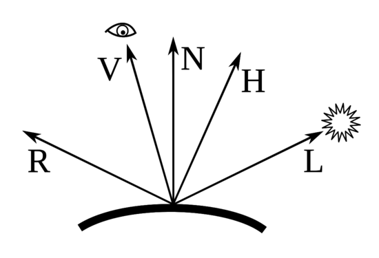 On va simuler plus tard la réflexion des rayons, mais comme on ne simulera qu'un seul rebondissement de rayons, on ne pourra pas obtenir ces taches. En effet, physiquement, il faut bien imaginer que les rayons ne sont pas exactement réfléchis, et ces variations aléatoires créent ces taches. On va donc "tricher", et simuler directement ces taches comme on le fait en OpenGL, en calculant ce qu'on appelle la couleur spéculaire.