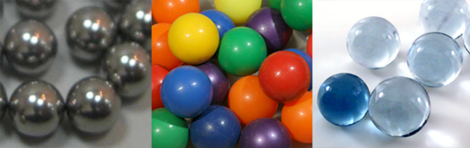 Un sol noir et blanc avec bille miroir, bulle et billes en cuivre. |